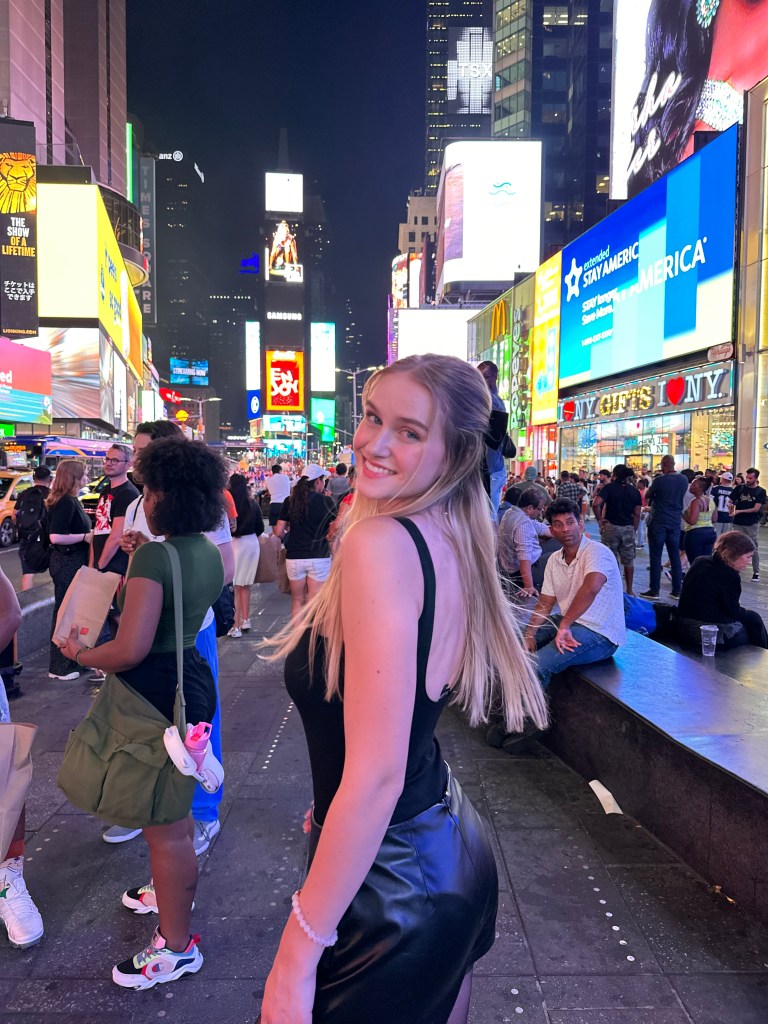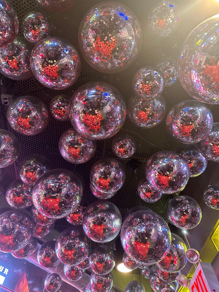 We returned to the hotel to decompress, change, and look through photos. We took the subway (by the end of the day we were experts) to Times Square. This was such a bittersweet part of the trip; the day had flown by, and we knew this was the last portion of our adventure. We decided to get some well-deserved fried chicken at Raising Cane’s. We loved the ambiance of disco decorations while discussing the day that had just passed us. We took a Lyft back to the hotel, snuggled up in our PJs, and watched part of a movie before absolutely crashing.