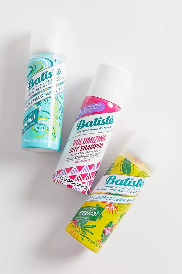 -Mini dry shampoo: I always need a refresher after flying, before going out, and especially when my hair looks extra flat or greasy. These tiny dry shampoos last longer than you would expect and bring the volume when needed.