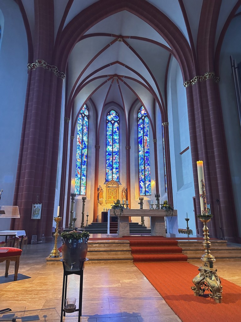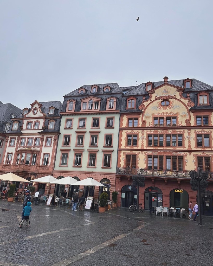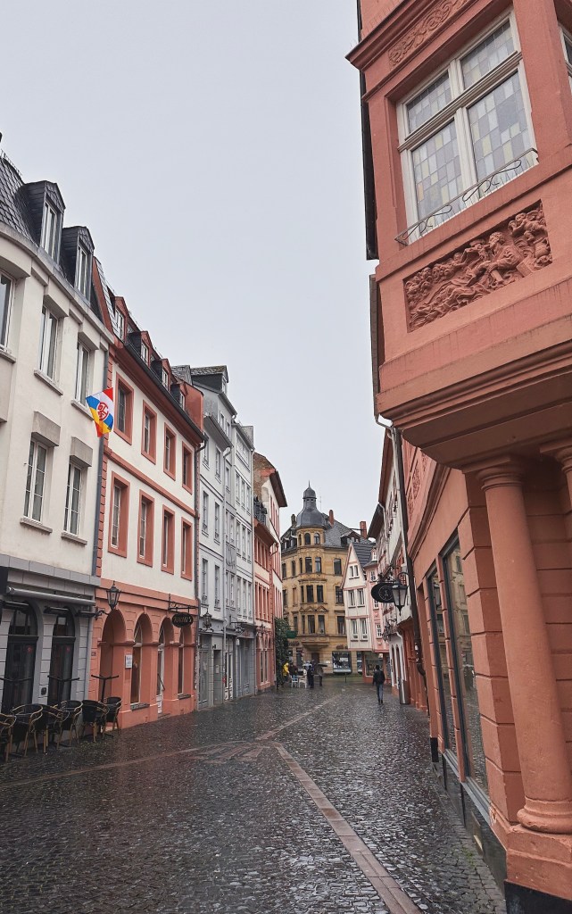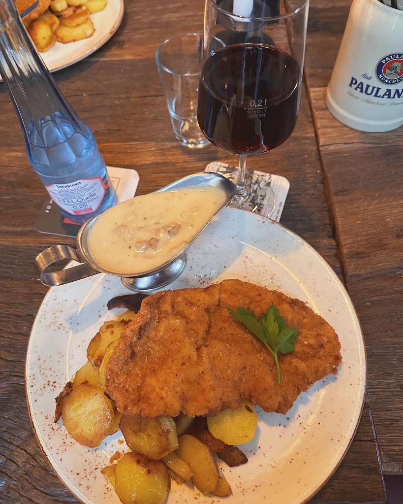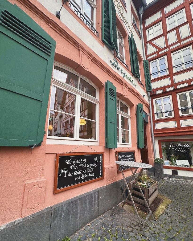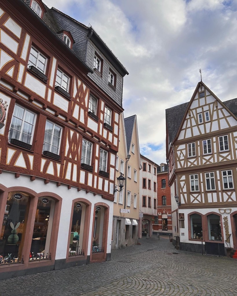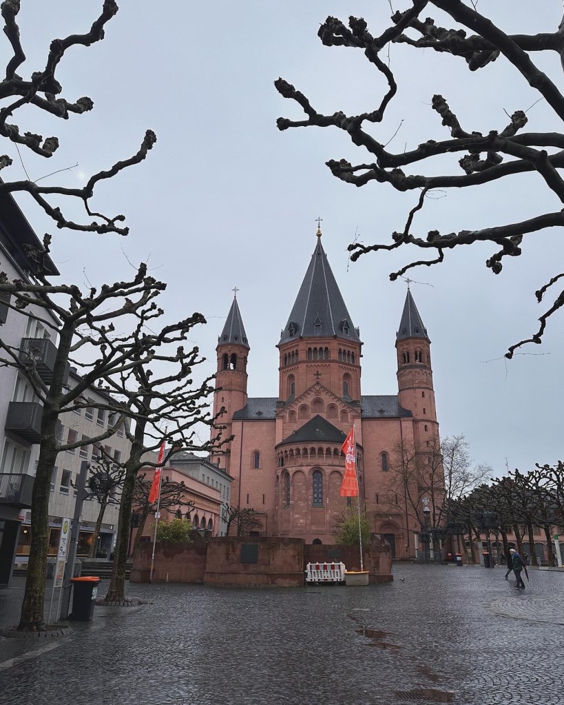 After going through customs, I went to an ATM to get some Euros to have on hand. One of my crew members bought me a giant pretzel to eat on our 40-minute bus ride to Mainz. It was around 10:30 am when we got to the hotel. My crew asked how long of a nap I was planning on taking; with red, tired eyes I said I wanted to go straight to exploring. They looked at me and said if I went out now, I’d crash in a few hours and miss the whole evening. I decided to sleep until 2 pm, then get ready and go out with one of my crew members, Jon. He took me all over town! I got to see two cathedrals, the Rhine river, downtown and the train station. I loved the architecture; the buildings looked just as beautiful as I imagined they would! We went out to dinner with 3 other crew members at a restaurant called Hof Ehrenfels, where I had schnitzel.